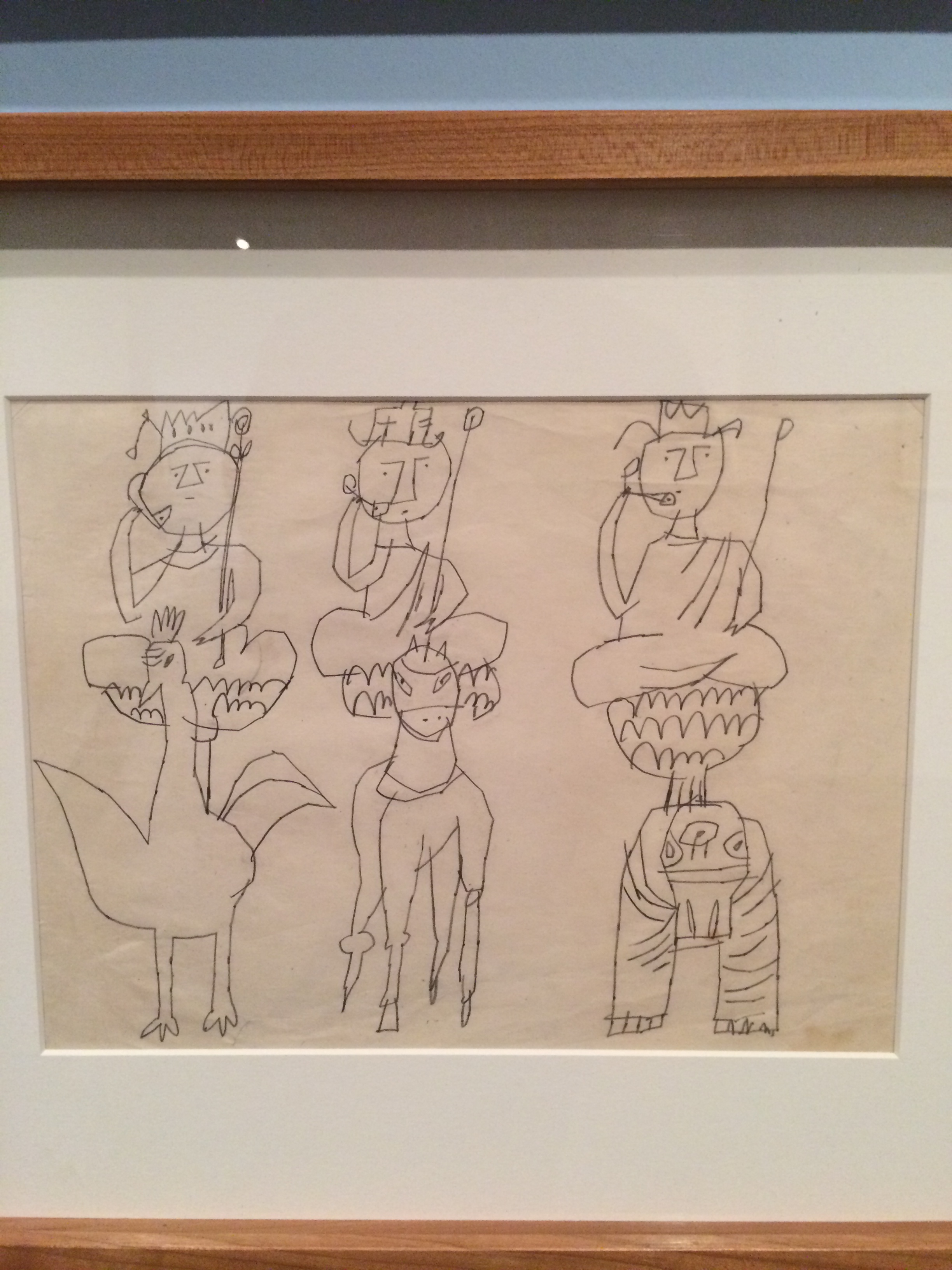 Earlier this summer, I was in Pittsburgh, and I went to the Andy Warhol museum. Photographs are not allowed, but I took my phone and pretended to check my email. I took the picture that’s on the cover of the bulletin today. It’s a little pen and ink that Warhol did when he was trying to advertise shoes and make his living. It was 1951. He had just gotten, I think, to New York City. That’s his depiction of the magi. There they are – one’s on a flamingo. They’re the magi with telephones, so if you look closely at the picture, you’ll see that some of them have little Western Union kind of handsets and telephones. That was his way of reinforcing the fact that the magi are trying to communicate. They’re trying to reach. They’re trying to close the distance through their journey, through the gifts they bring. Charming.