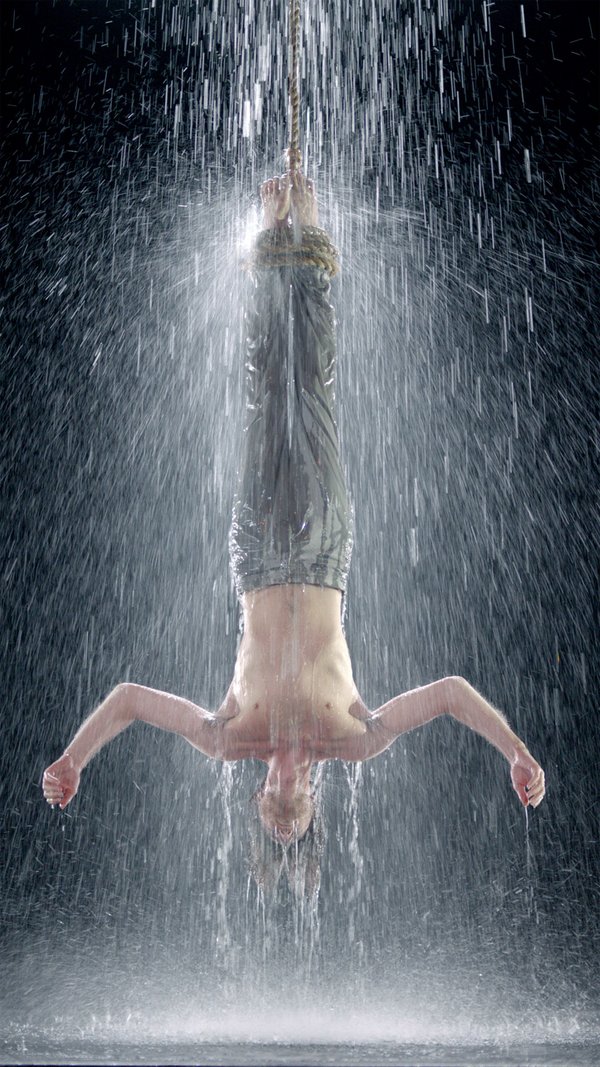 And in it, you have four saints, as it were, experiencing incredible temptation in the sense of trial. Viola separates these different forms of suffering and trial and temptation and the wilderness according to four elemental forces that have traditionally been used in the universe through dirt, through earth, through wind, through fire, and water. In each of the installations, you can see a figure who is slowly experiencing that sense of anxiety, that desolation, that despair, that desperation, that panic that comes when their very identity and their very persistence as a person is being threatened.